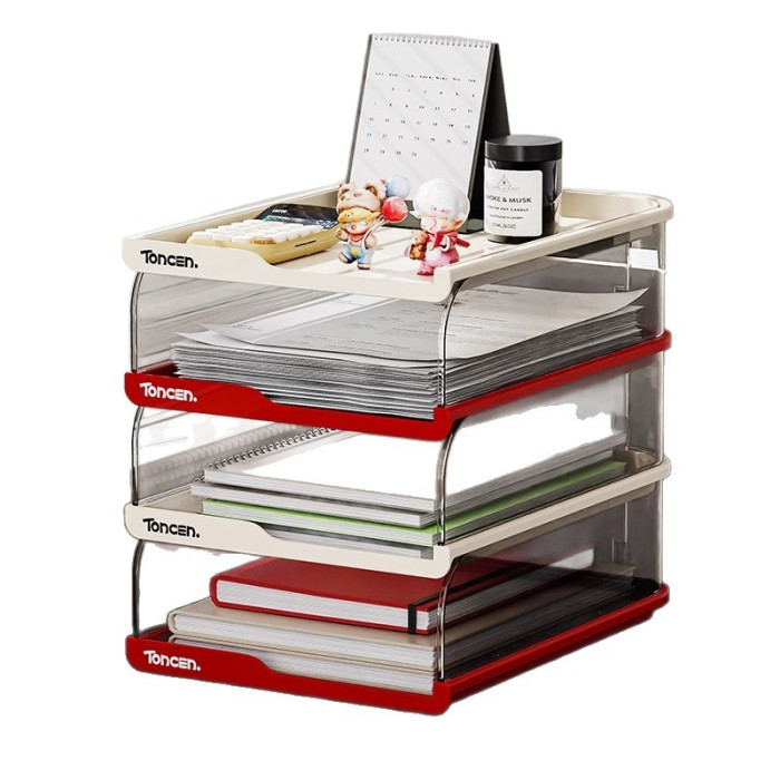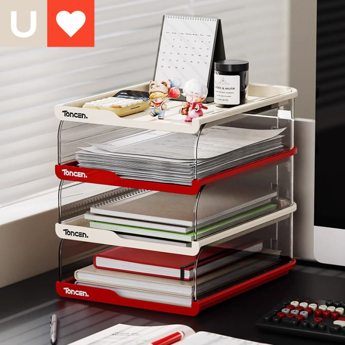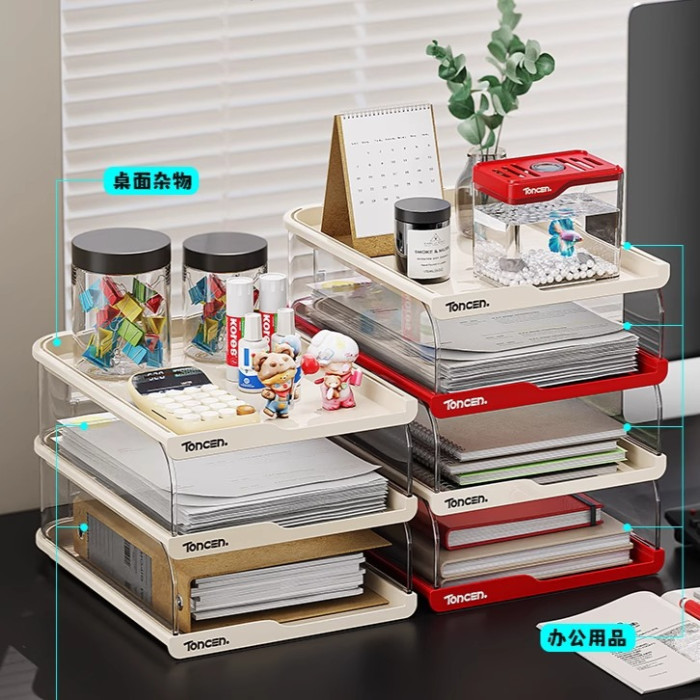 友耐桌面文件收納架透明多層置物架辦公室文件襍物工位整理架子