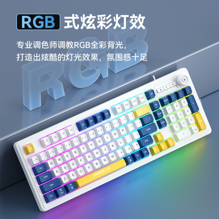 sangee三巨K18遊戯有線鍵盤三拼色發光機械手感桌上型電腦配件