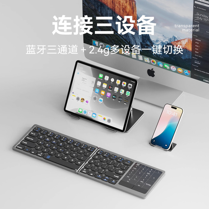 全鍵折曡鍵盤無線藍牙可攜式數字觸控板ipad手機平板筆電滑鼠套裝