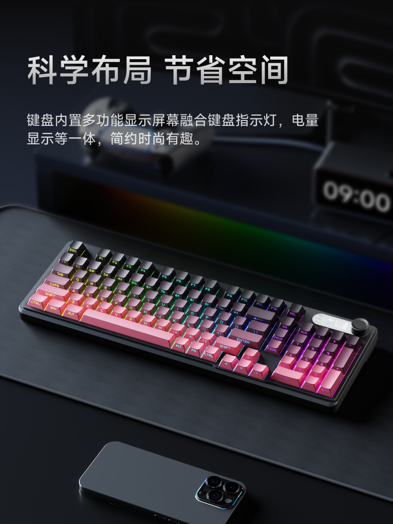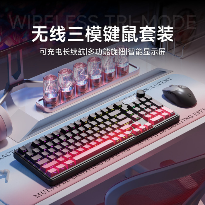 前行者V102無線鍵盤滑鼠套裝藍牙有線三模帶螢幕機械手感靜音