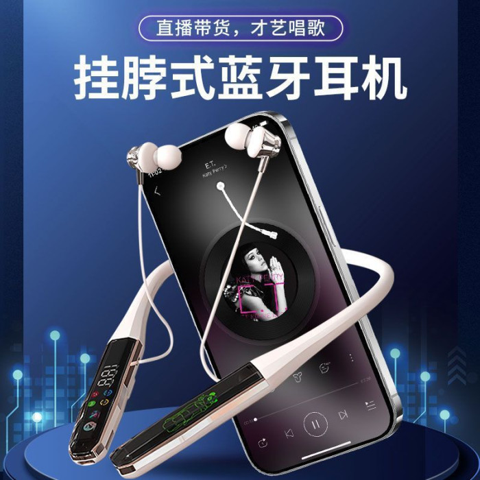 FD-8 無線藍牙掛脖耳機K歌耳返帶麥克風遊戯降噪電量顯示可插卡
