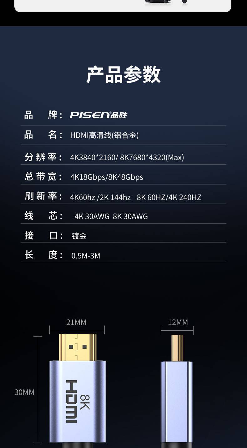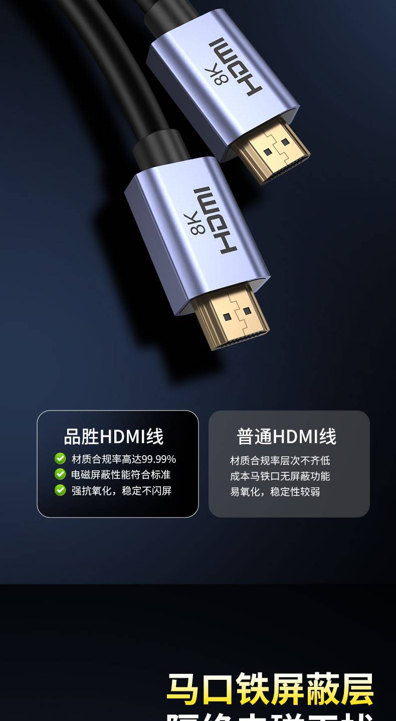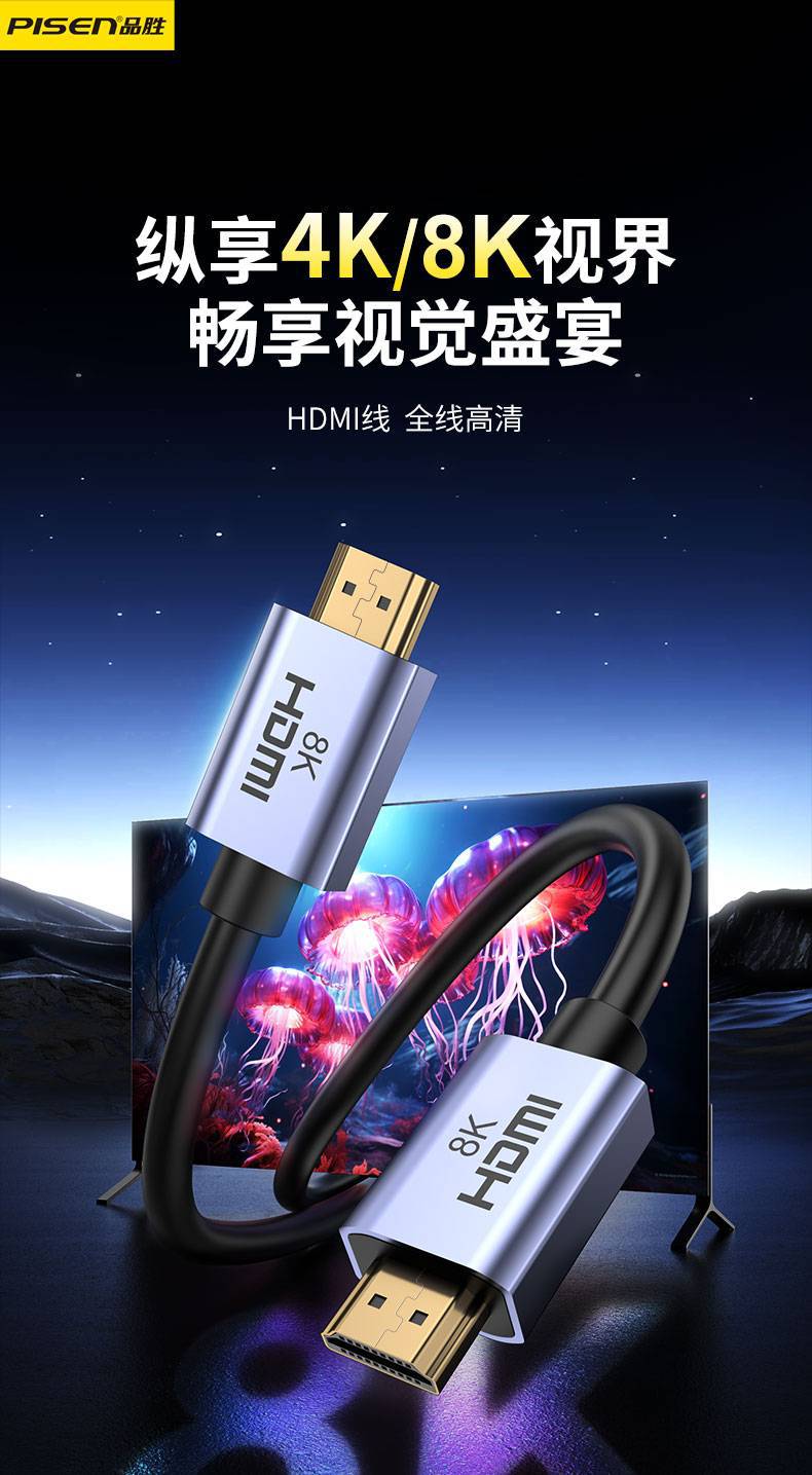品勝HDMI線8K真高清HDMI2.1電腦顯示器桌上型機機頂盒投影儀連接線