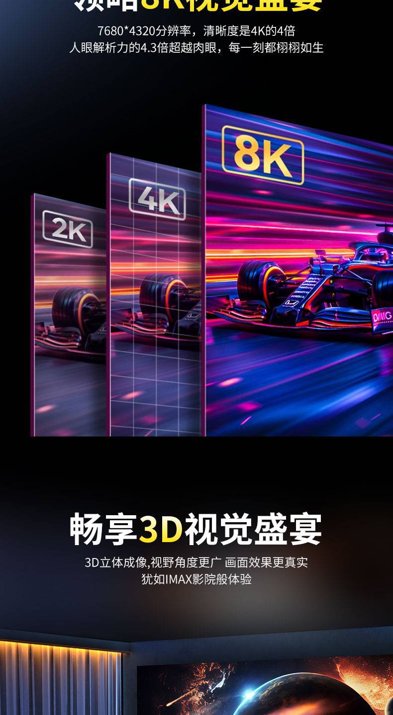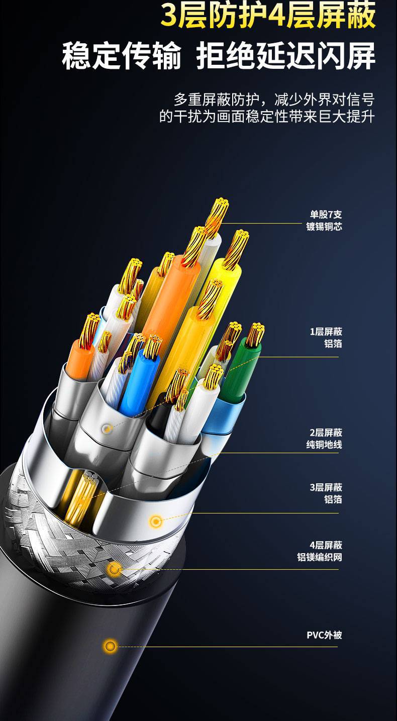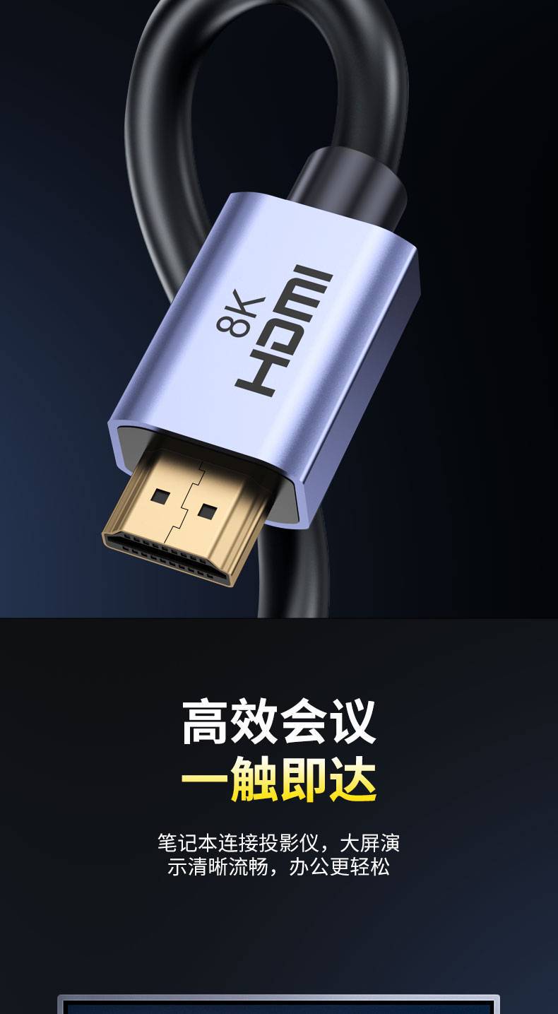 品勝HDMI線8K真高清HDMI2.1電腦顯示器桌上型機機頂盒投影儀連接線