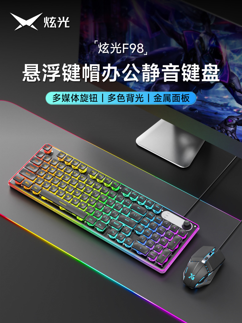 炫光F98有線靜音鍵盤高顔值機械手感背光平板筆記型電腦打字辦公