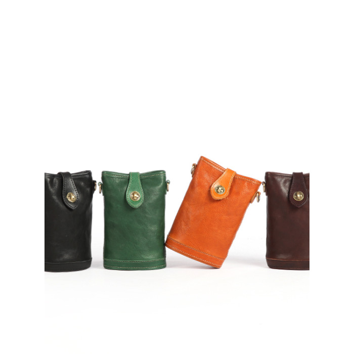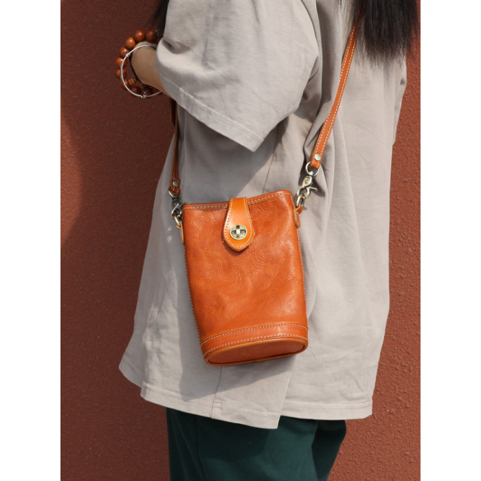 25小衆原創水桶包女包手機包真皮斜後背包文藝頭層牛皮植鞣皮手工包