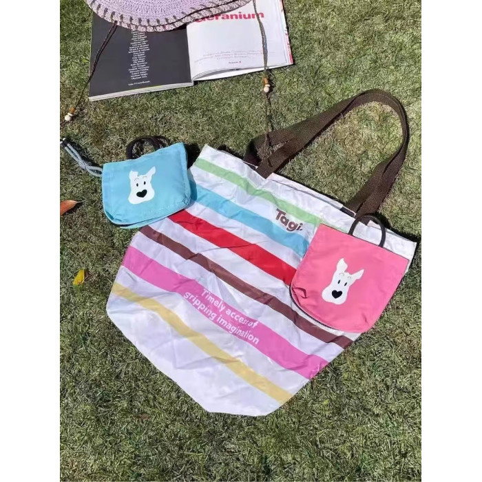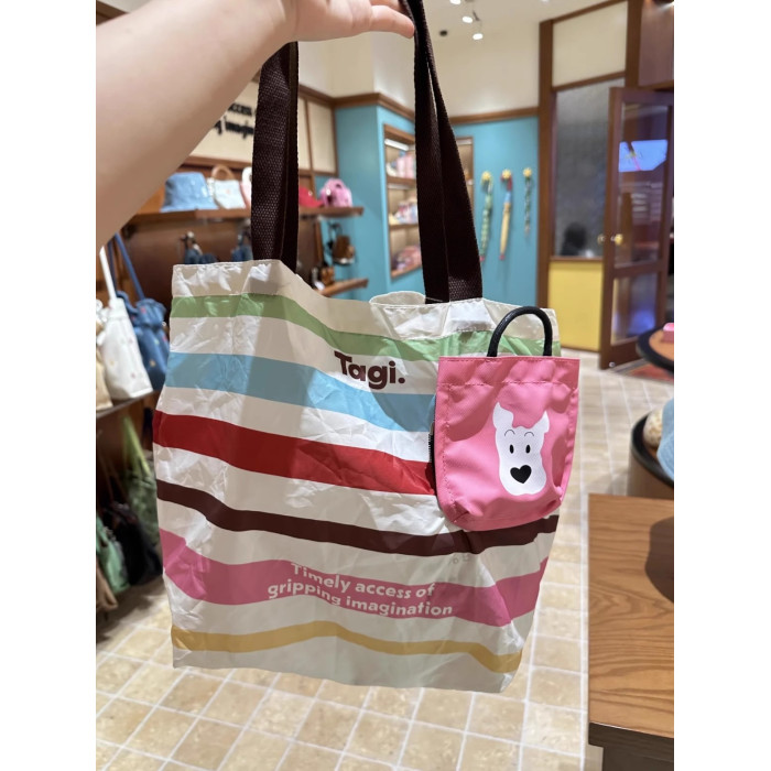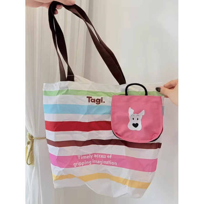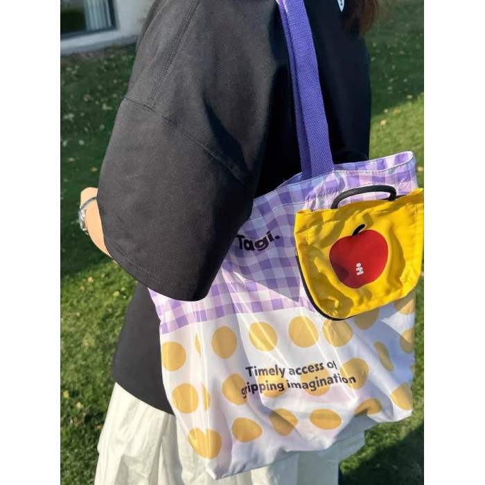 Tagi.新款哈哈/爆米花可攜式折曡大容量收縮包旅行袋抽繩收納袋女包