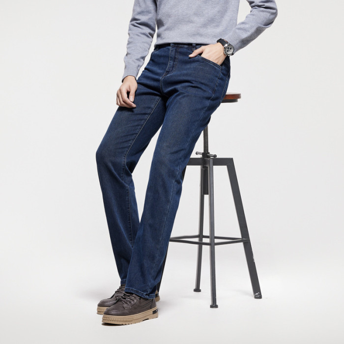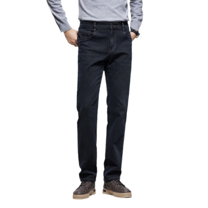 直筒牛仔褲男秋天新款中年爸爸男士微彈百搭商務休閒長褲