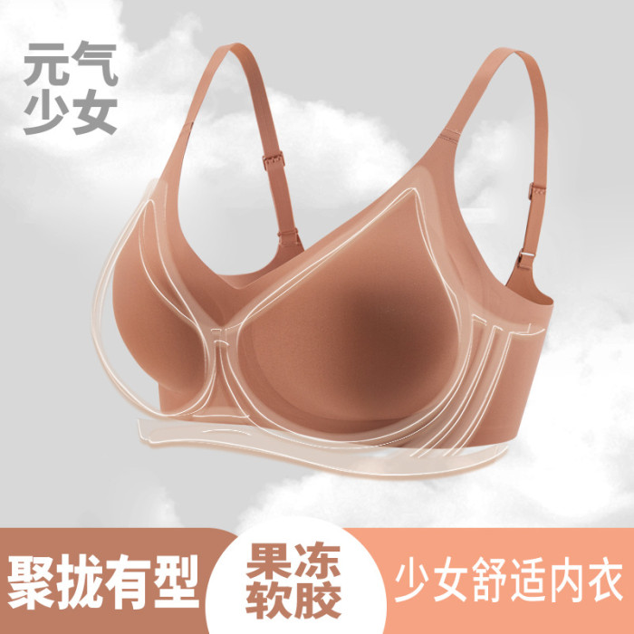 新款無痕內衣女果凍膠軟支撐薄款固定杯小胸聚攏上托透氣運動文胸