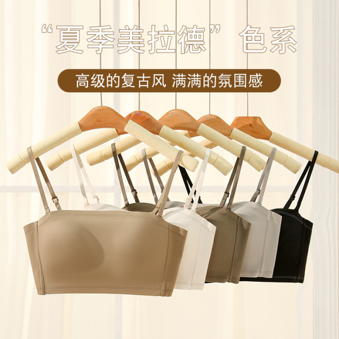 薄款內衣女性感u型無痕美背抹胸文胸無鋼圈小胸聚攏調整型收副乳