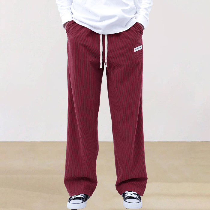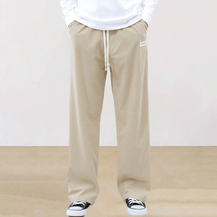 新款純色系帶運動褲簡約直筒男士休閒褲燈芯絨痞帥高級感濶腿長褲
