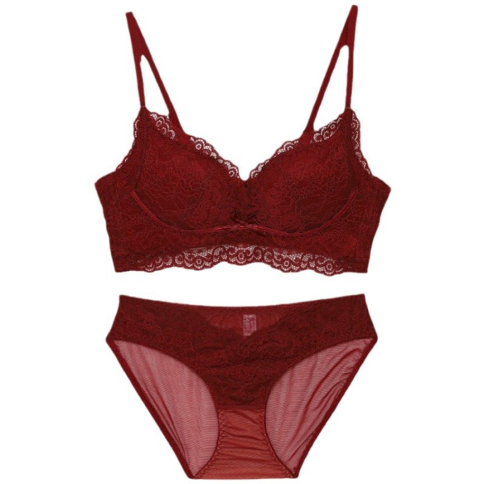 原版紅色內衣女小胸聚攏性感上托蕾絲本命年結婚調整型文胸套裝