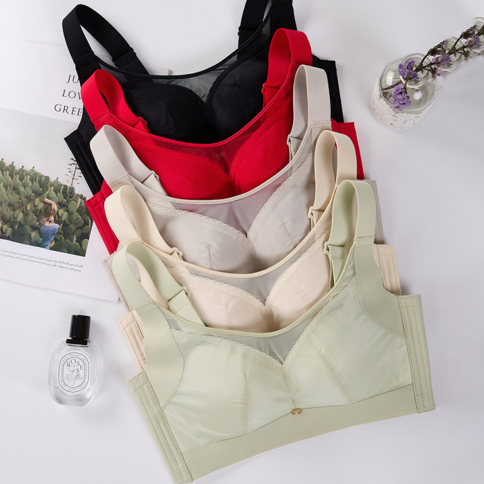 內衣內衣女薄款大胸顯小定型杯聚攏調整型收副乳大碼抹胸無痕文胸