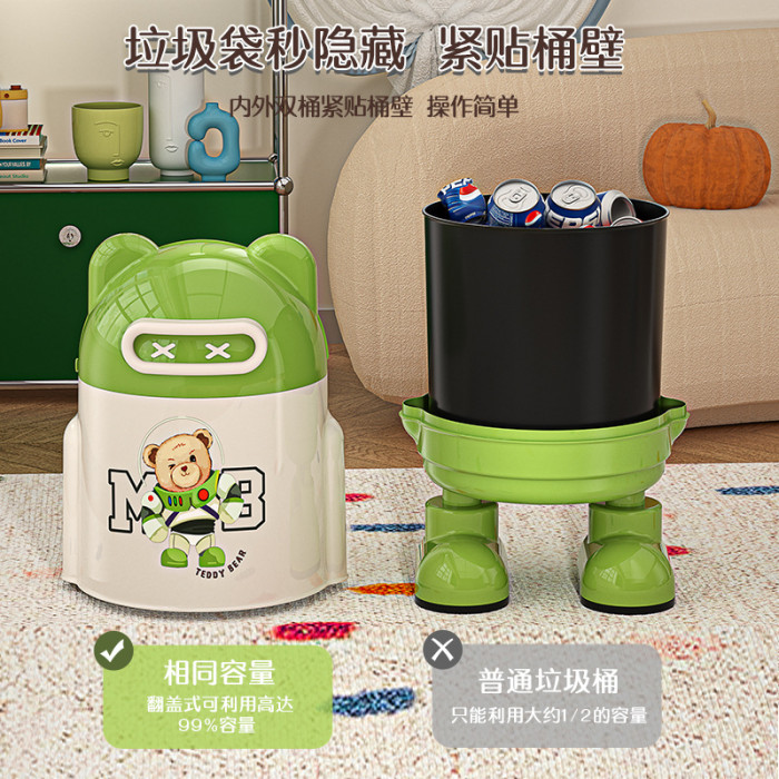 垃圾桶泰迪熊聯名家用客廳高顔值衛生間厠所帶蓋臥室卡通創意紙簍