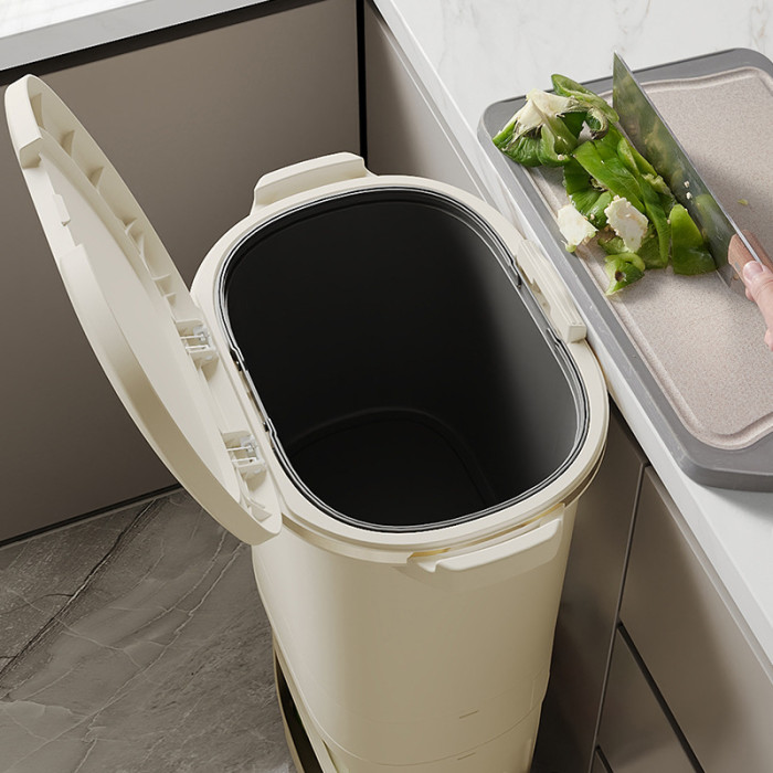 廚房垃圾桶家用高款雙層大容量收納桶按壓帶蓋乾溼分離夾縫垃圾箱