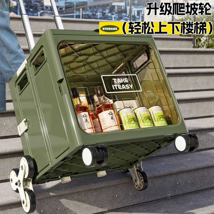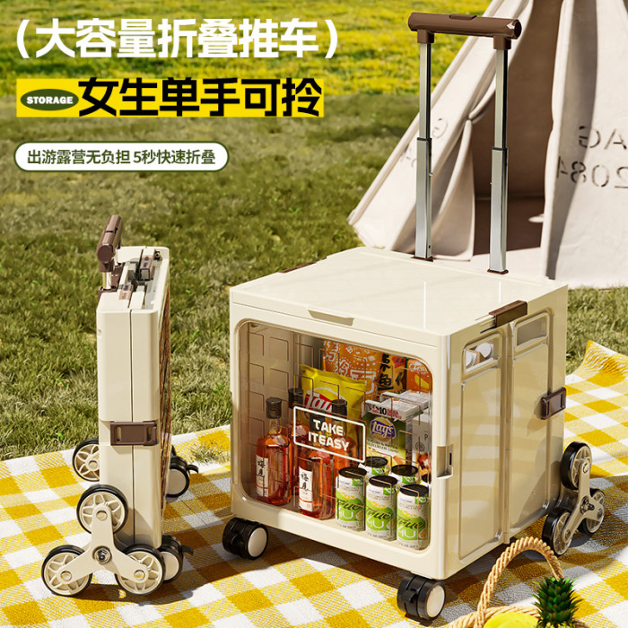 拉桿收納箱車用戶外可折曡手拉野營露營整理箱帶滑輪多功能小推車
