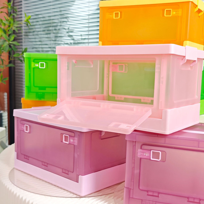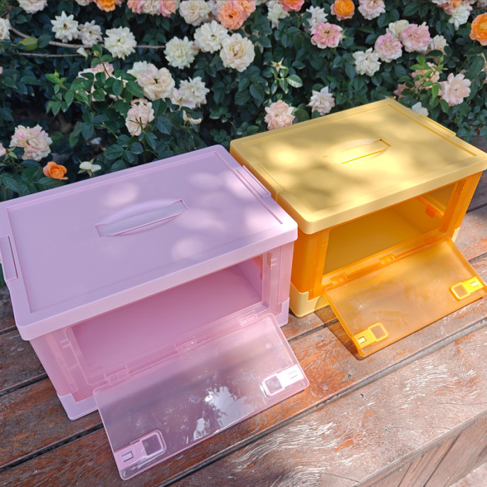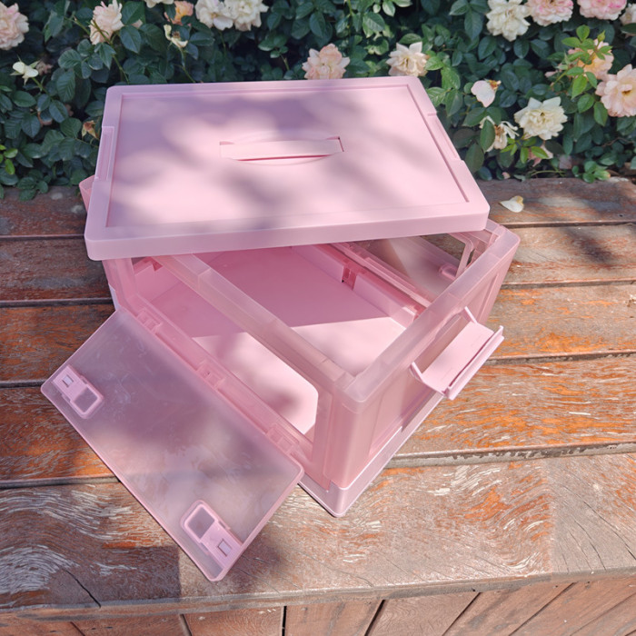中秋禮品箱折曡手提收納箱露營箱車用整理搬運箱三開門彩色整理箱