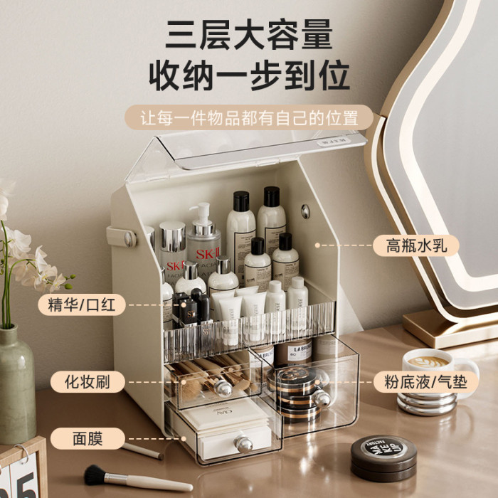 化妝品收納盒多功能大容量高級感口紅梳妝台護膚品防塵桌面置物架