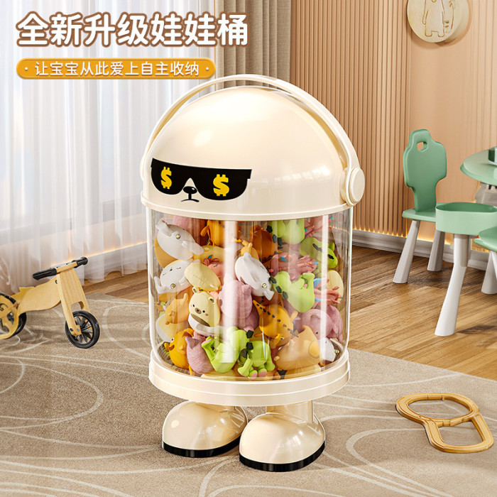 娃娃收納桶家用兒童毛絨玩具透明收納筐大容量可愛公仔卡通收納筒