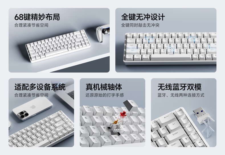 前行者MT68無線機械鍵盤小型可攜式藍牙雙模辦公滑鼠套裝