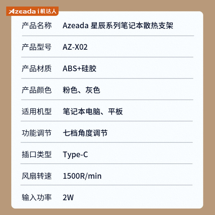 AZEADA筆電散熱器通用靜音風扇散熱支架底座降溫散熱架宿舍禮品