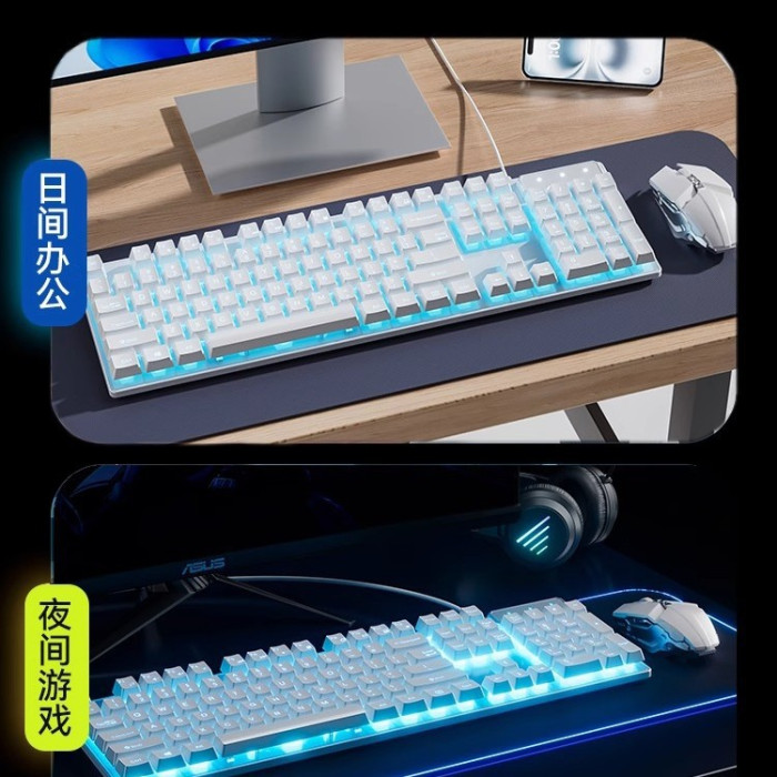 鍵盤滑鼠套裝機械桌上型電腦通用電競遊戯專用茶軸筆記型電腦有線款