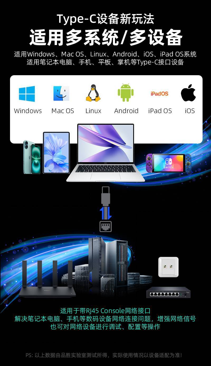品勝Type-c轉RJ45網線接口手機平板筆記型電腦直連路由器聯網線