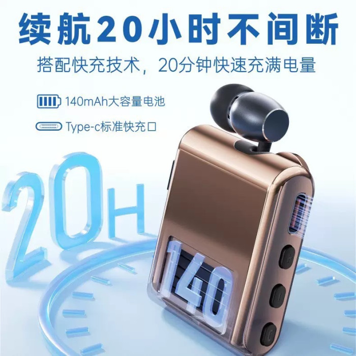 K89 單耳入耳式超長續航領夾式無線藍牙耳機降噪數顯拉線耳機