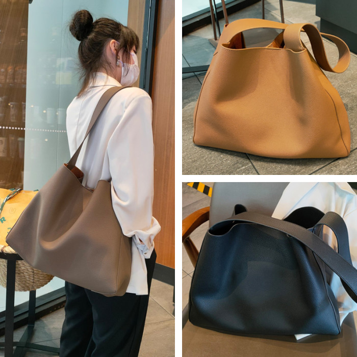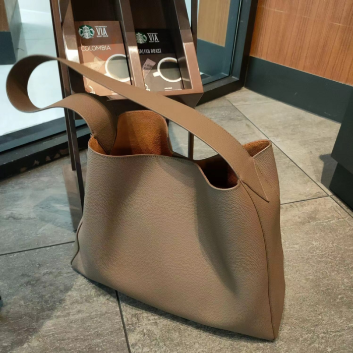 2025新款大容量真牛皮水桶包休閒單肩斜背女包寬肩帶托特包通勤包
