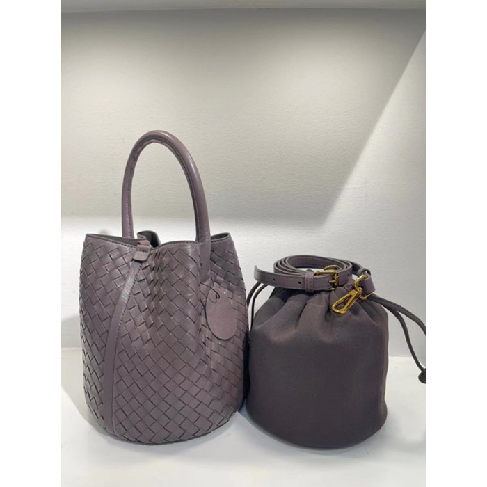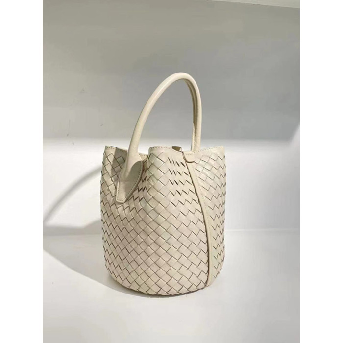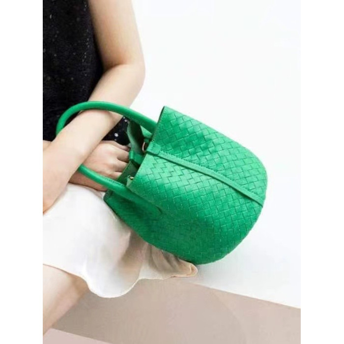 羊皮編織水桶包斜後背包新款女包真皮時尚手工大容量手提單肩包時尚