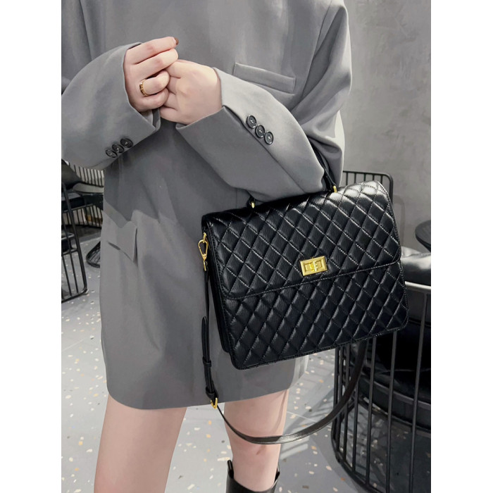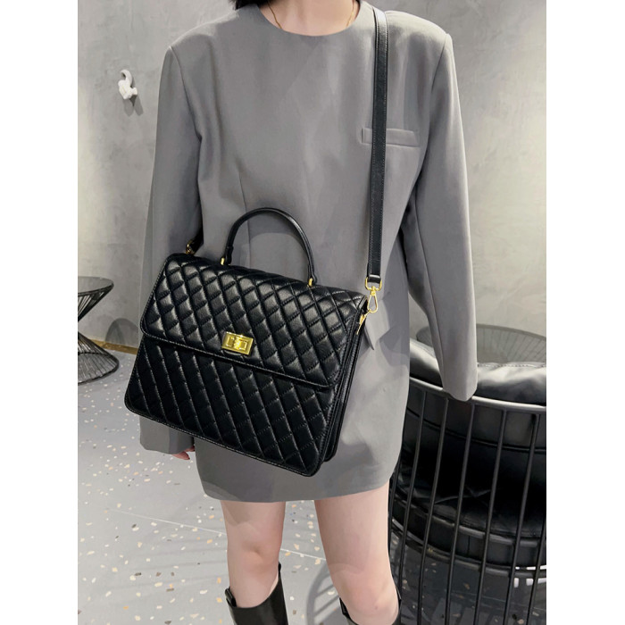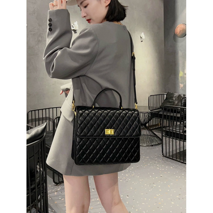 高級質感小衆女包包2024新款真皮大容量菱格手提包通勤單肩斜後背包