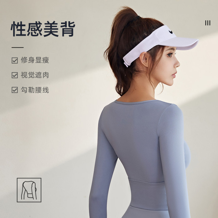 聚衣堂運動瑜伽長袖收腰裸感瑜伽服透氣緊身健身上衣