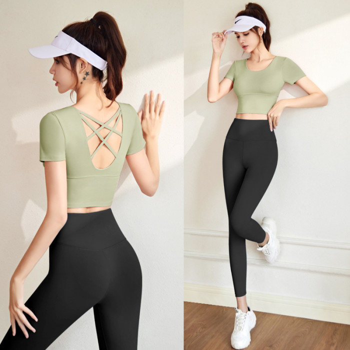 聚衣堂瑜伽服套裝顯瘦運動套裝女裸感美背帶胸墊健身套裝女