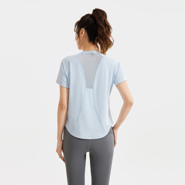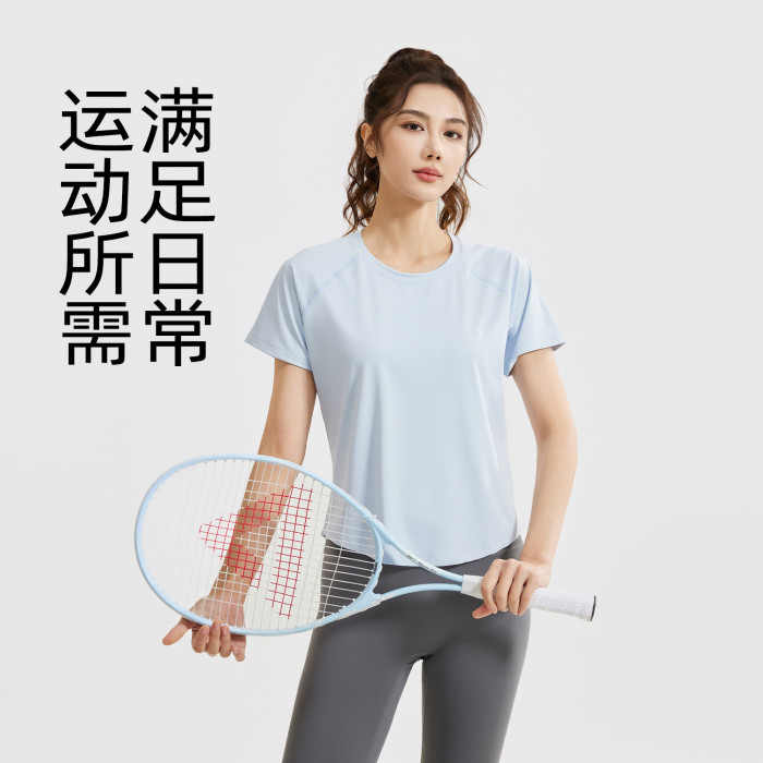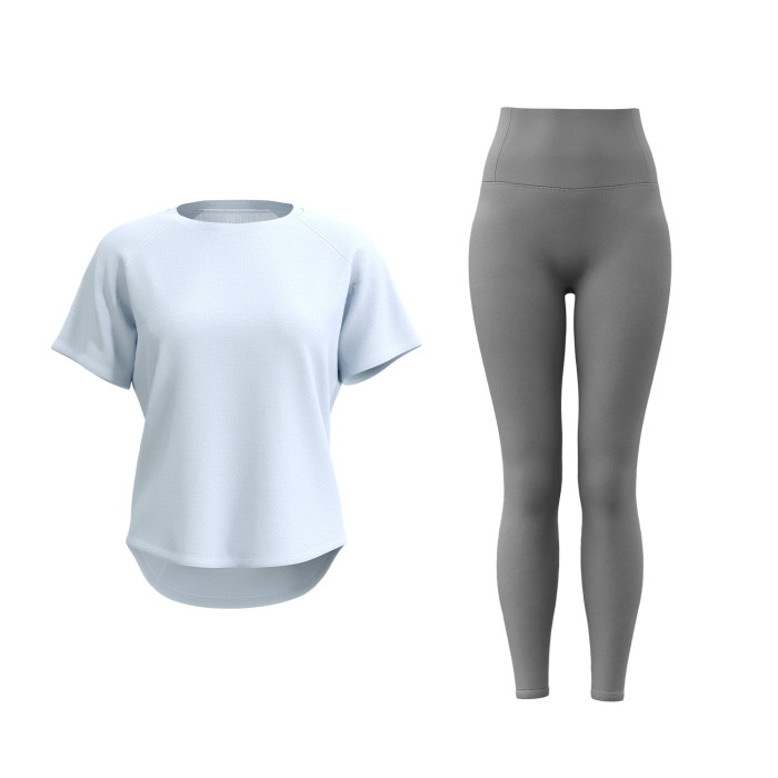 聚衣堂新款春夏休閒套裝網紗罩衫T恤高腰運動緊身褲顯瘦健身套裝
