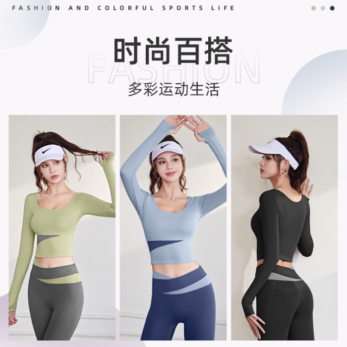 聚衣堂薄絨拼色長袖裸感顯瘦運動跑步健身上衣女