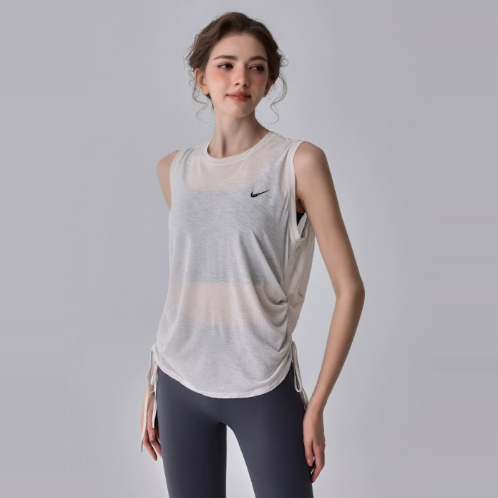 嚴選夏季抽繩顯瘦瑜伽罩衫涼感瑜伽服上衣女健身寬松無袖運動背心