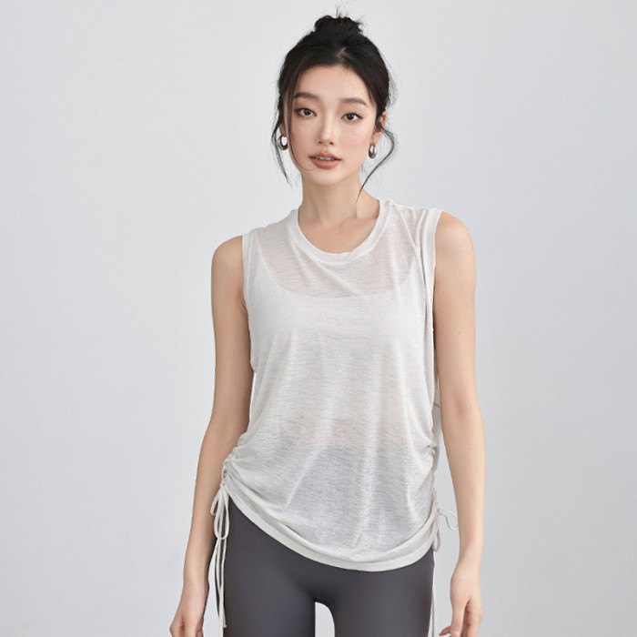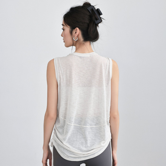 嚴選竹節紗寬松瑜伽罩衫運動短袖夏瑜伽服跑步速乾女訓練健身背心