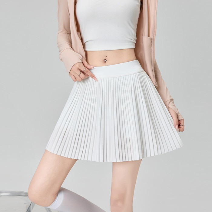 嚴選白色運動半身短裙女風琴裙防走光包臀瑜伽百褶裙速乾網球裙夏