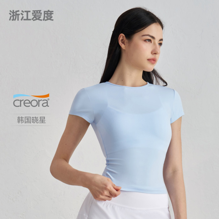 嚴選SNU休閒運動短袖收腰顯瘦修身瑜伽T恤跑步訓練裸感健身上衣夏