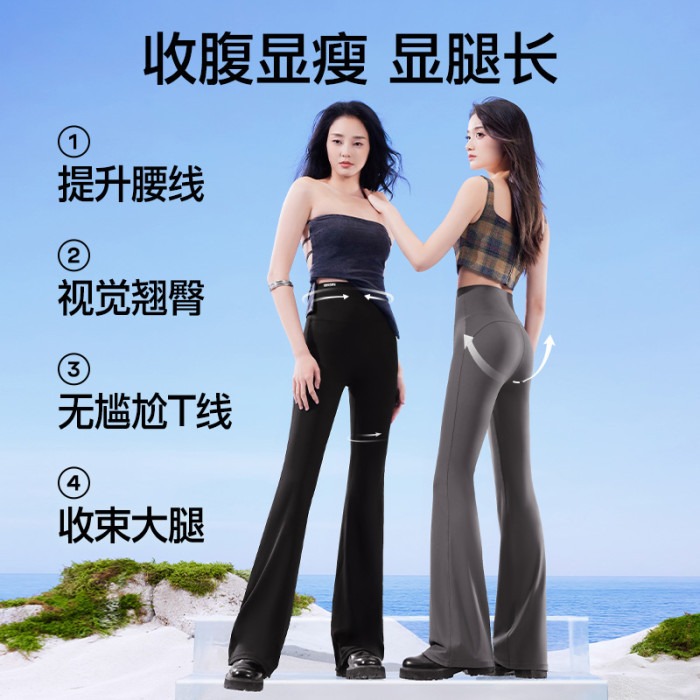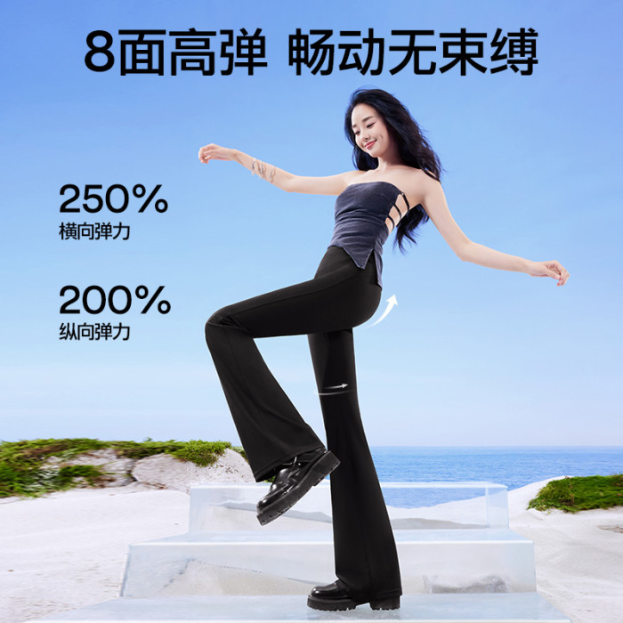 嚴選瑜伽微喇褲女防曬新瑜伽褲子夏薄外穿黑色休閒健身鯊魚喇叭褲