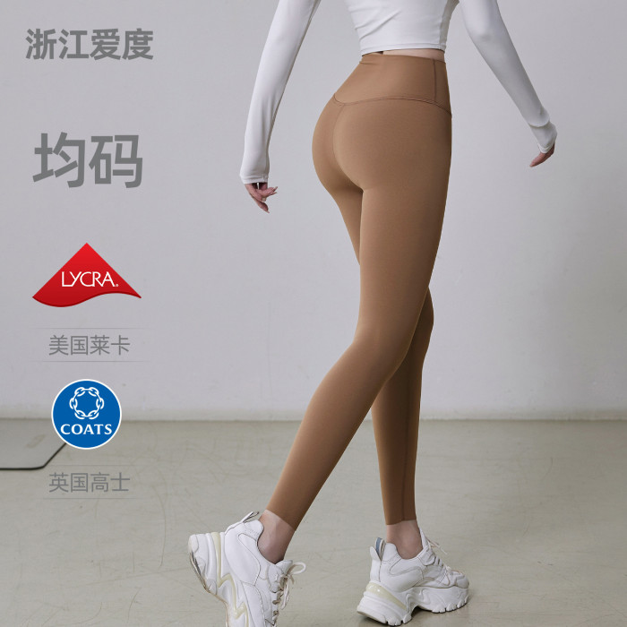 嚴選無尺碼高腰裸感瑜伽褲均收腹提臀普拉提外穿緊身運動九分褲女