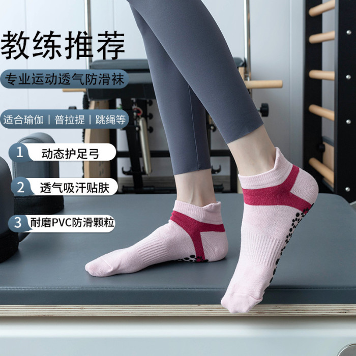 瑜珈運動襪健身防滑襪子透氣短筒五指襪蹦床襪矽膠地板襪跳操繩襪