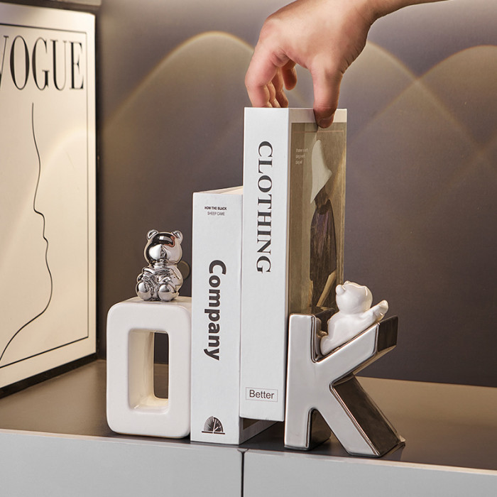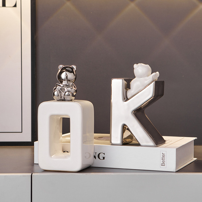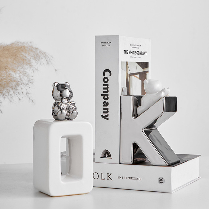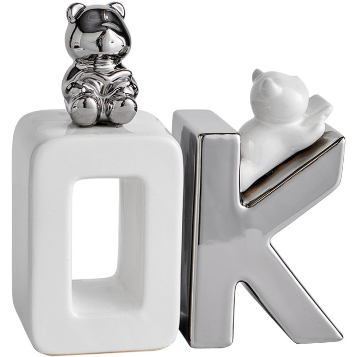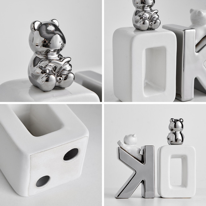 陶瓷OK熊書檔擺件-銀白