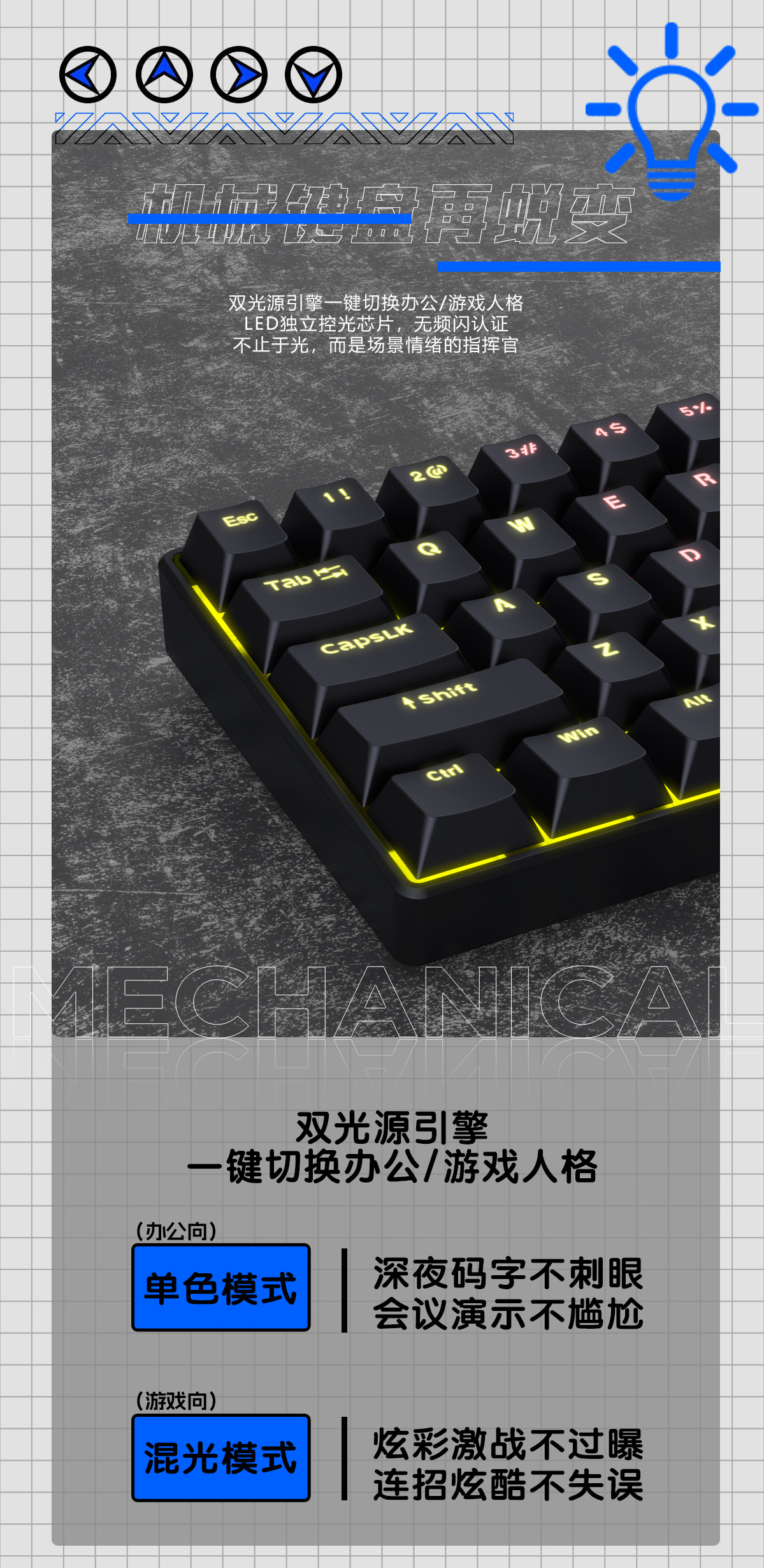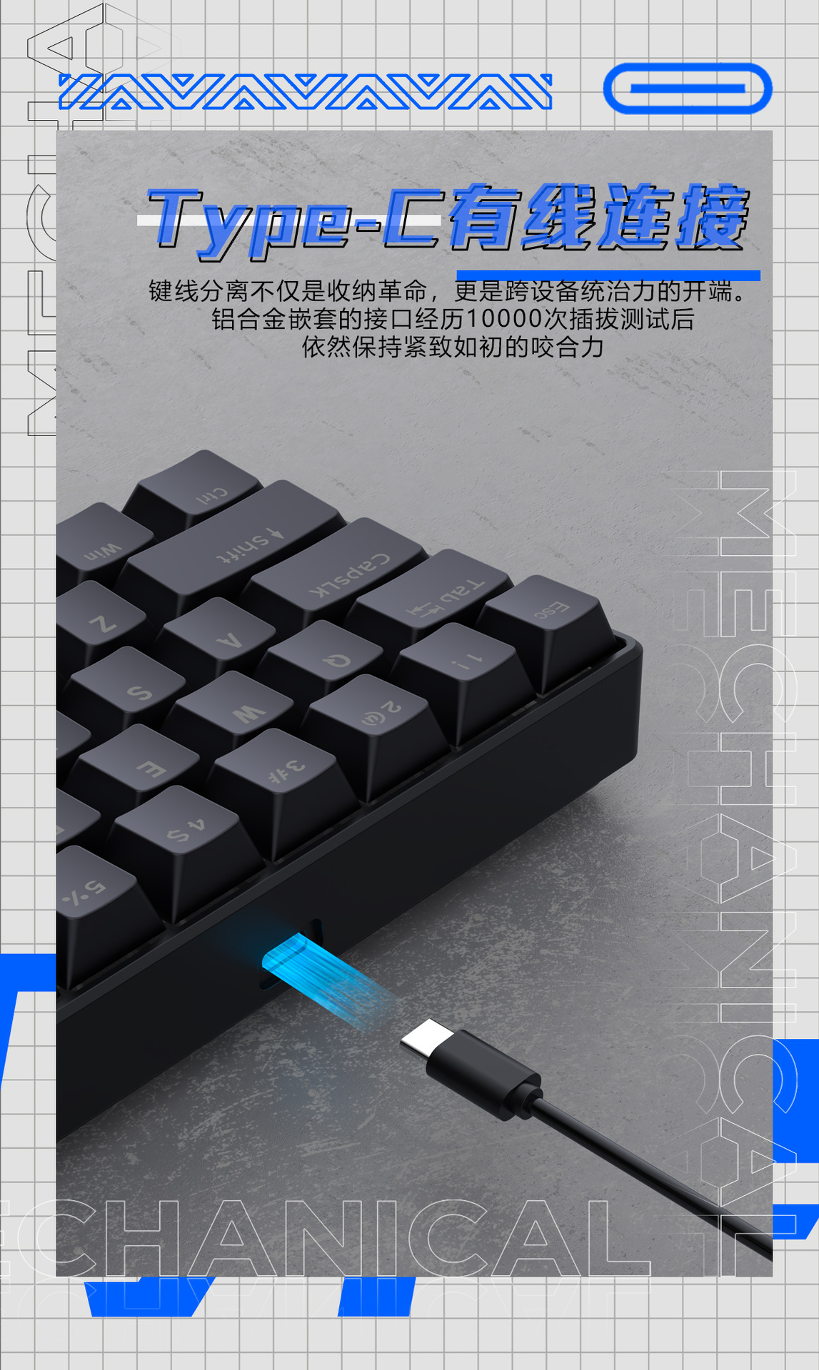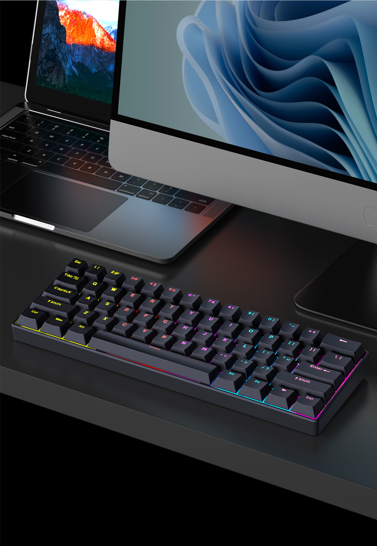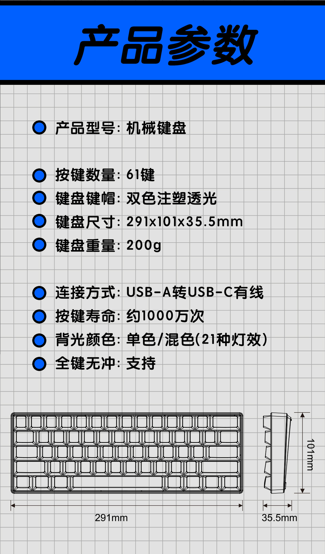 61鍵機械鍵盤遊戯發光辦公usb有線通用可攜式電競風
