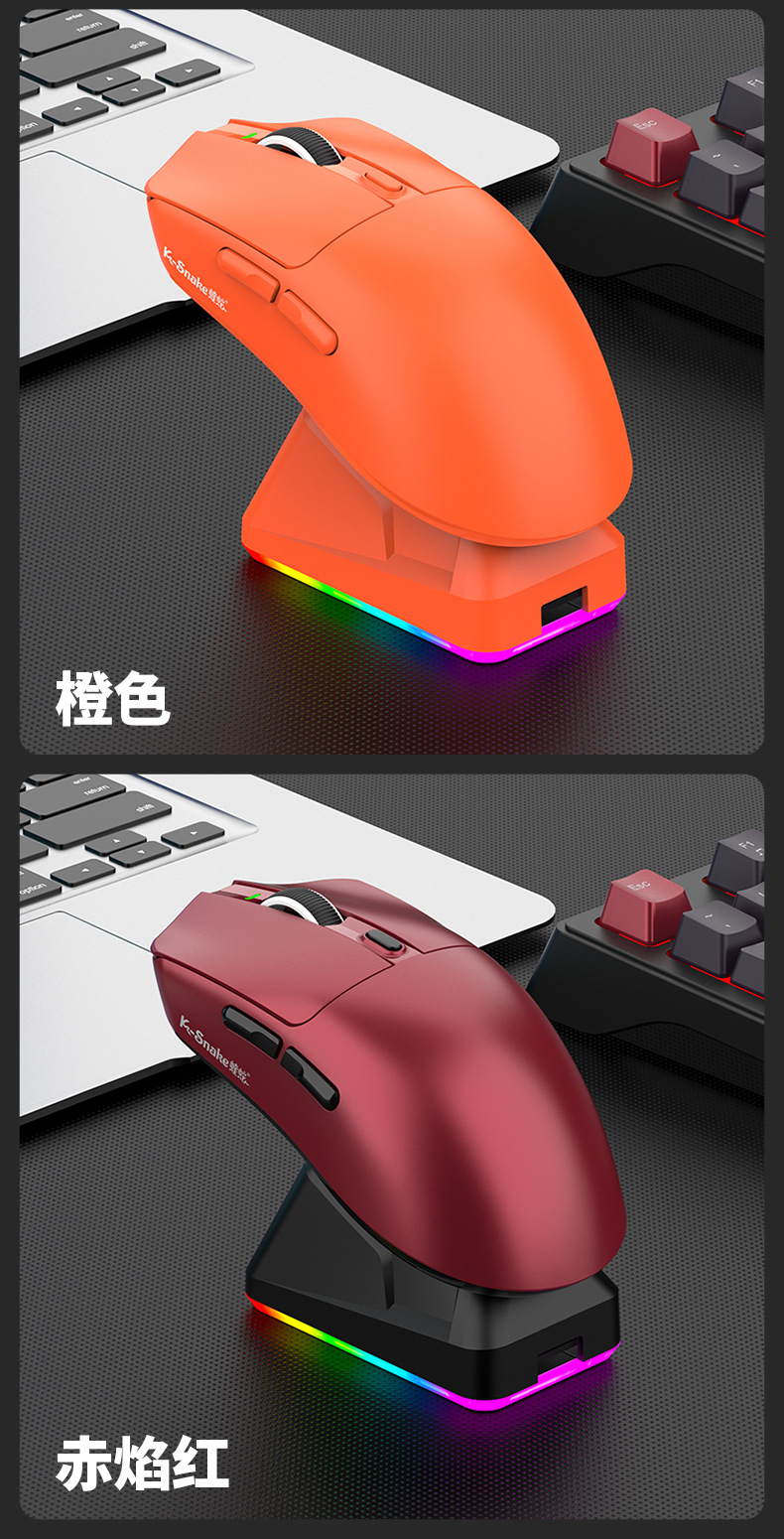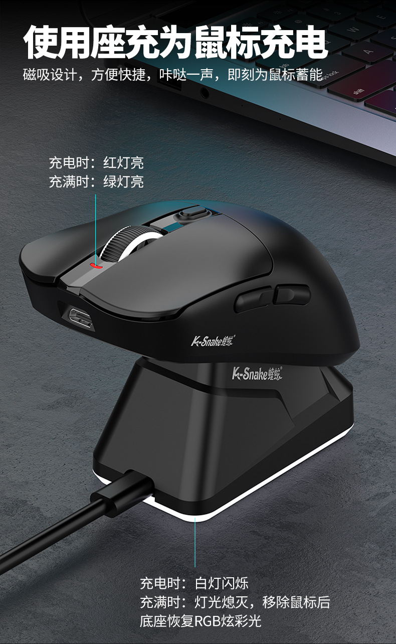 蝰蛇X11滑鼠輕量化電競遊戯三模無線藍牙滑鼠帶充電RGB底座桌上型機