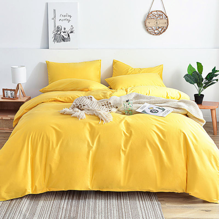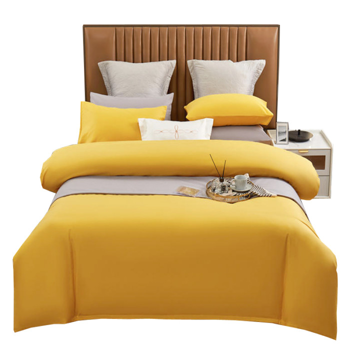 100%全棉黃色被套單件1.5單人被罩素色150x200x230純棉床上四件套