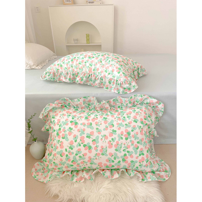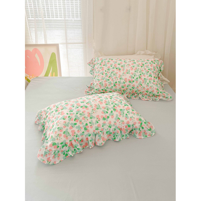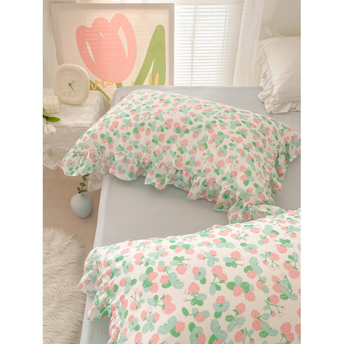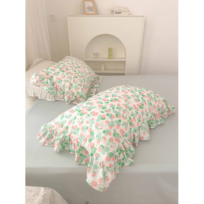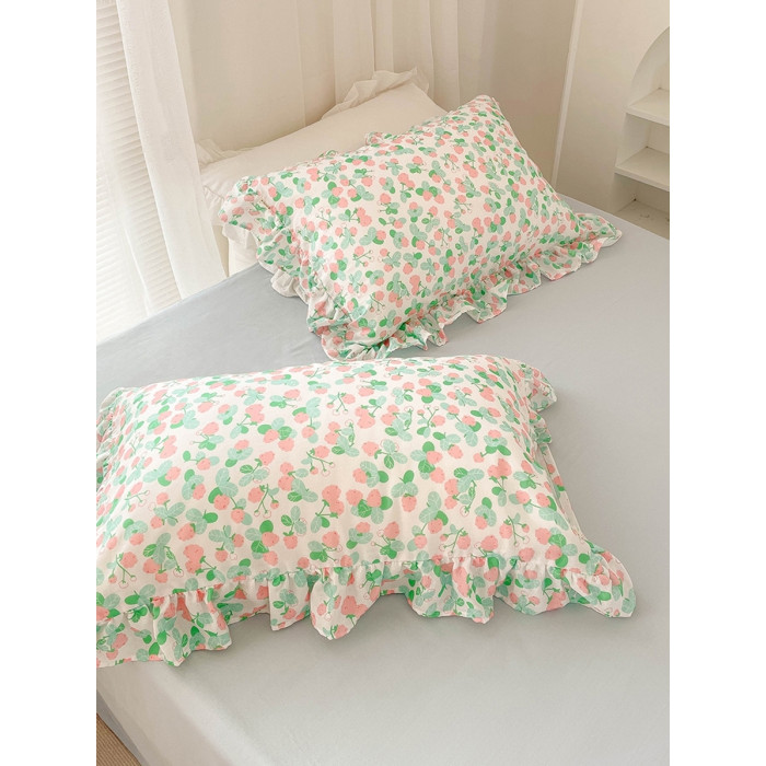小樹莓 春夏小碎花原創插畫嬰兒級A類雙層紗全棉花邊款枕套枕芯罩