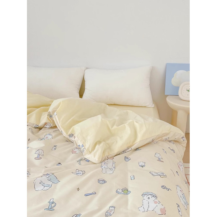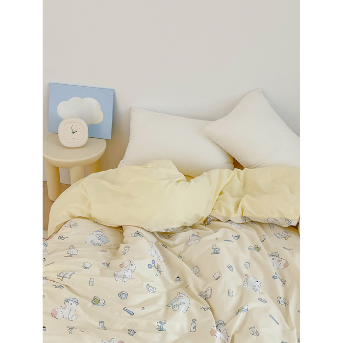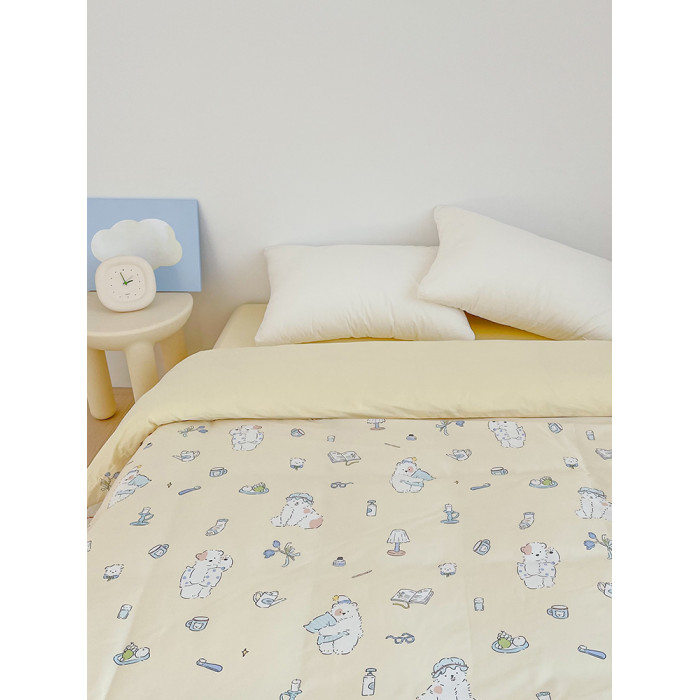 熊熊睏睏 原創小熊插畫柔軟舒服全棉被套單件被罩被單100純棉奶黃