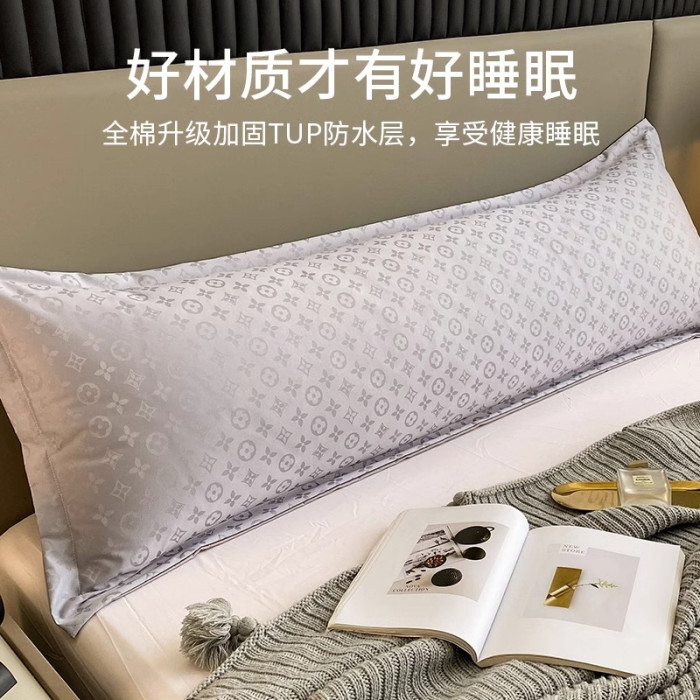 印花防水冰絲長枕套加長款雙人1.2/1.5/1.8m米情侶枕頭巾套枕芯套