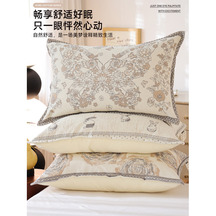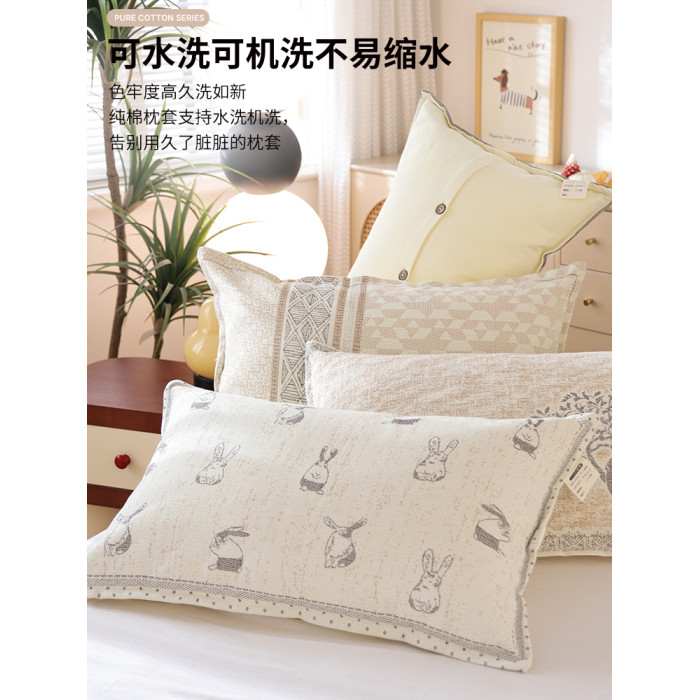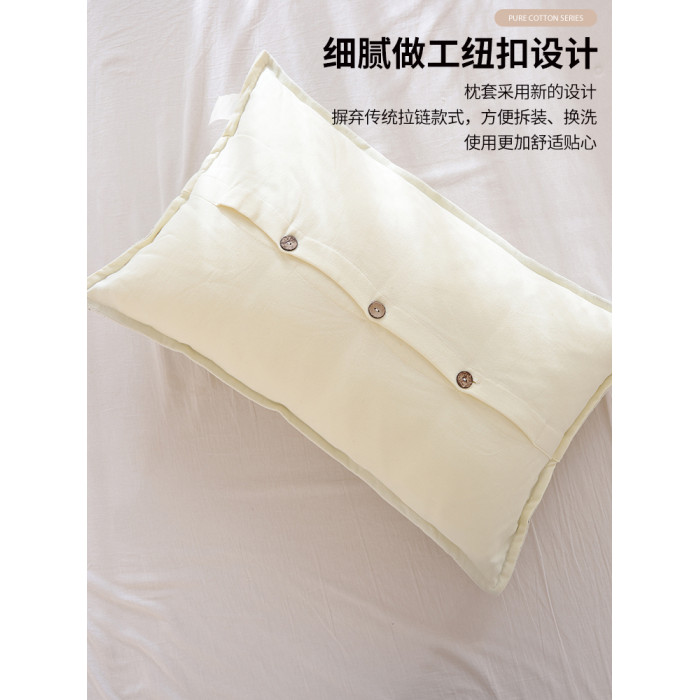 紐釦純棉紗布枕套一對裝新款家用全棉枕頭套防滑不脫落成人枕芯套