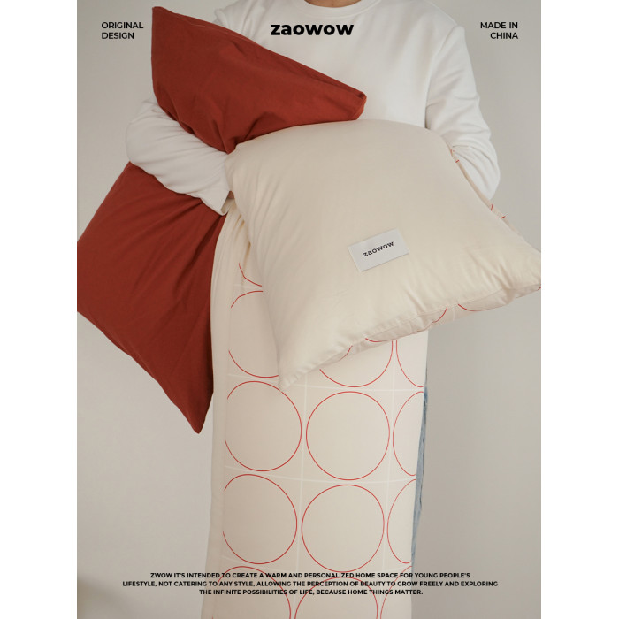造臥zwow小衆款100全棉雙人枕套夫妻情侶家庭枕頭印花幾何枕頭套